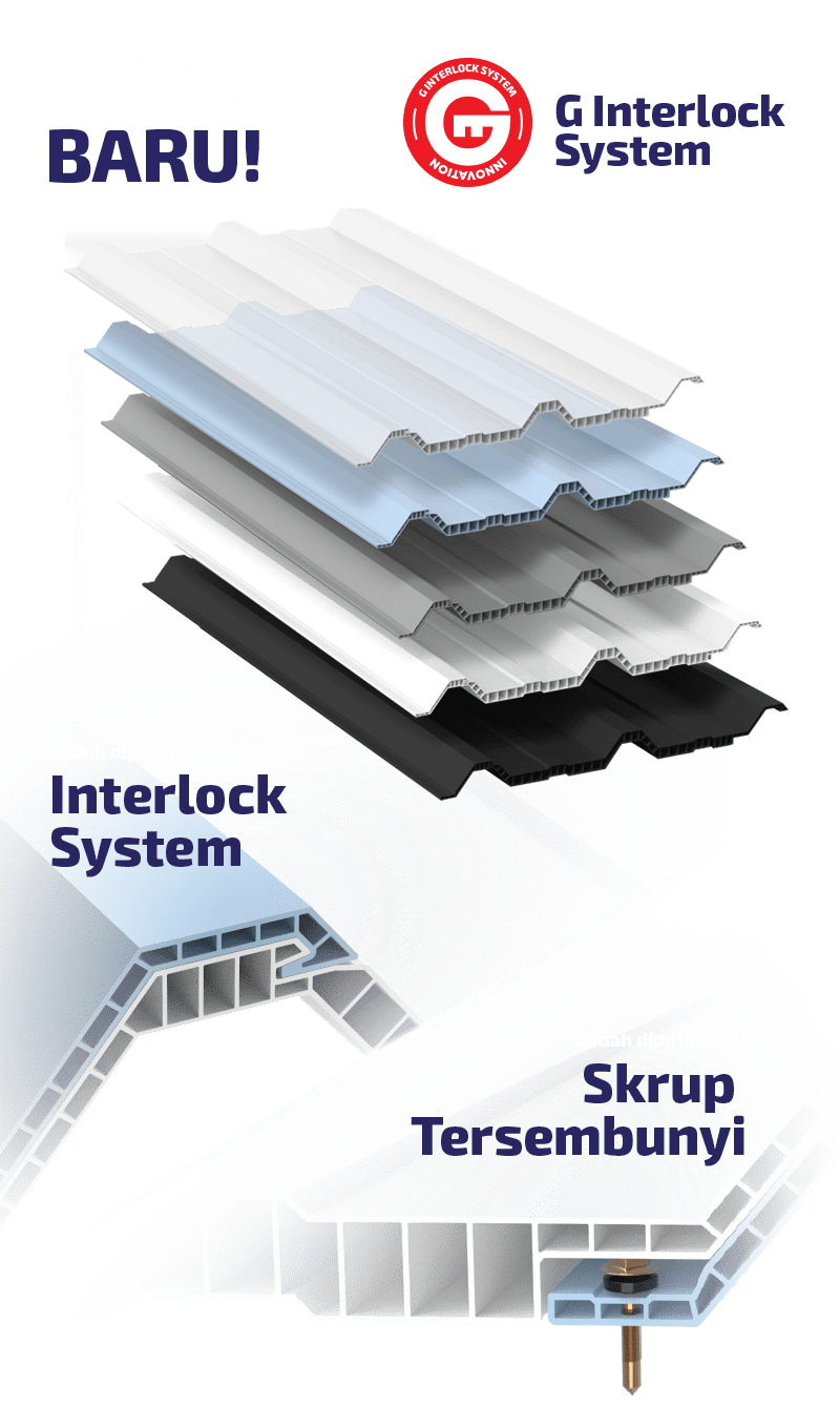 Rufingku di ciptakan dengan semangat untuk menciptakan solusi yang lebih baik. Dengan pilihan ketebalan 15 mm untuk performa optimal dan 12 mm untuk pilihan yang lebih ekonimis. Rufingku memiliki formula pelindung UV sehingga lebih kuat dan tahan lama. Rufingku hadir dengan inovasi G Interlock System membuat Rufingku menjamin tidak terjadinya kebocoran pada cela. Selain itu, pemasangan mudah dengan teknologi skrup di dalam (tersembunyi) membuat hasil akhir lebih rapih dan anti bocor.